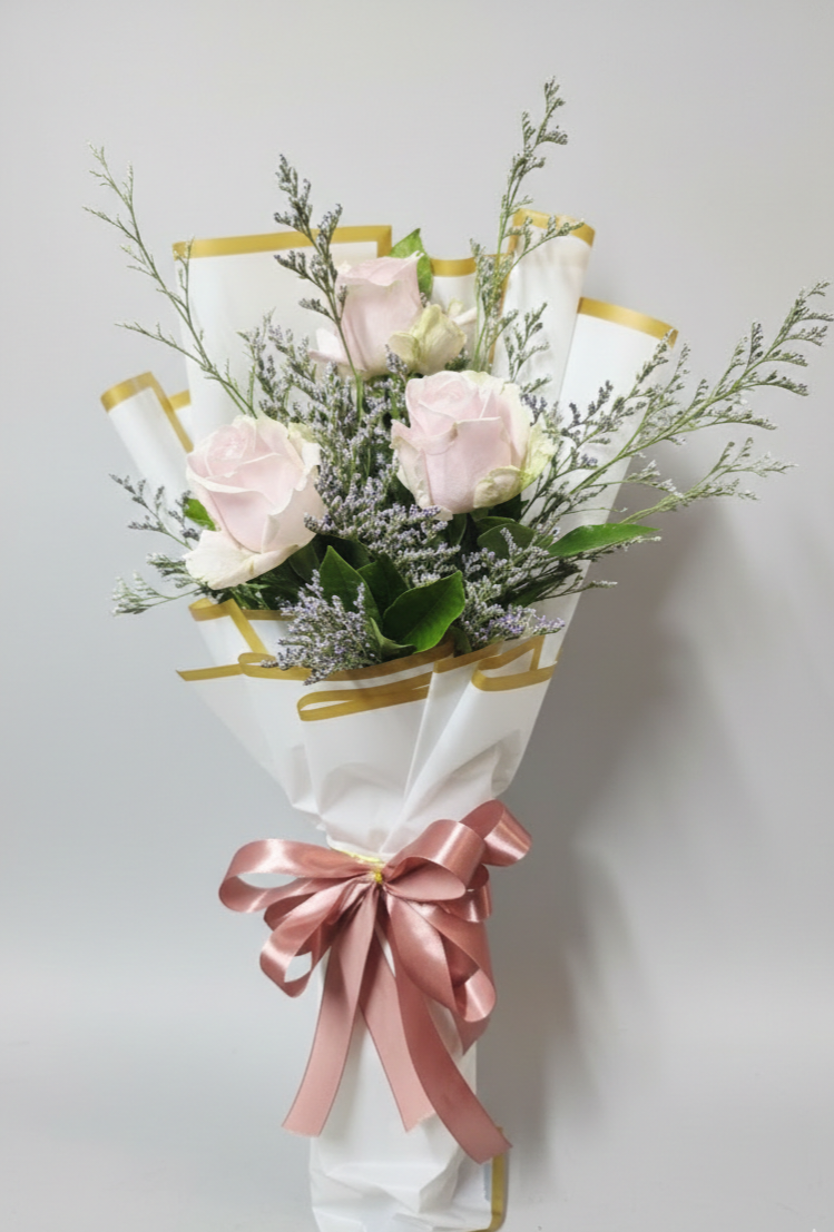 Soft Focus features three blush pink rose bouquets, carefully crafted to enhance any setting. The soft hue of the roses provides a calming aesthetic, promoting tranquility. Ideal for both decorative and gifting purposes, this arrangement supports a serene atmosphere in homes or events.